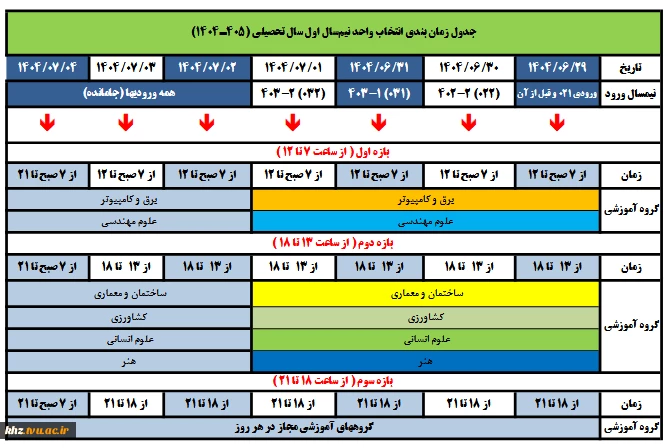 امتیاز دهید : اطلاعیه زمانبندی انتخاب واحد نیمسال اول سال تحصیلی 1404 2 شنبه 29 شهریور 1404 ساعت 8:37